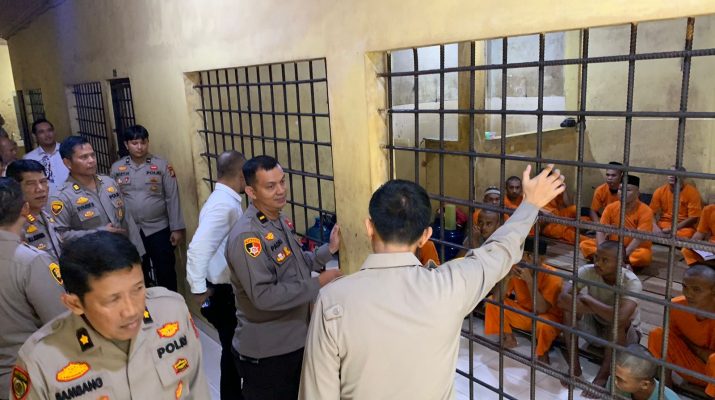 KUANTAN SINGINGI, WARTAPOLRI.COM – Kapolres Kuantan Singingi, AKBP Angga F. Herlambang, S.I.K., S.H., melakukan pengecekan langsung ke ruang tahanan Polres Kuansing pada Minggu (19/1/2025) pukul 11.45 WIB. Kegiatan ini bertujuan untuk memastikan kondisi para tahanan dalam keadaan sehat dan aman, serta memantau langsung situasi keamanan di ruang tahanan. Kegiatan ini turut dihadiri oleh sejumlah pejabat utama (PJU) Polres Kuansing, yaitu Wakapolres Kuansing, KOMPOL Novaldi, S.Sos., M.Si., Para Kabag Polres Kuansing, Para Kasat Polres Kuansing dan Para Kapolsek jajaran Polres Kuansing.