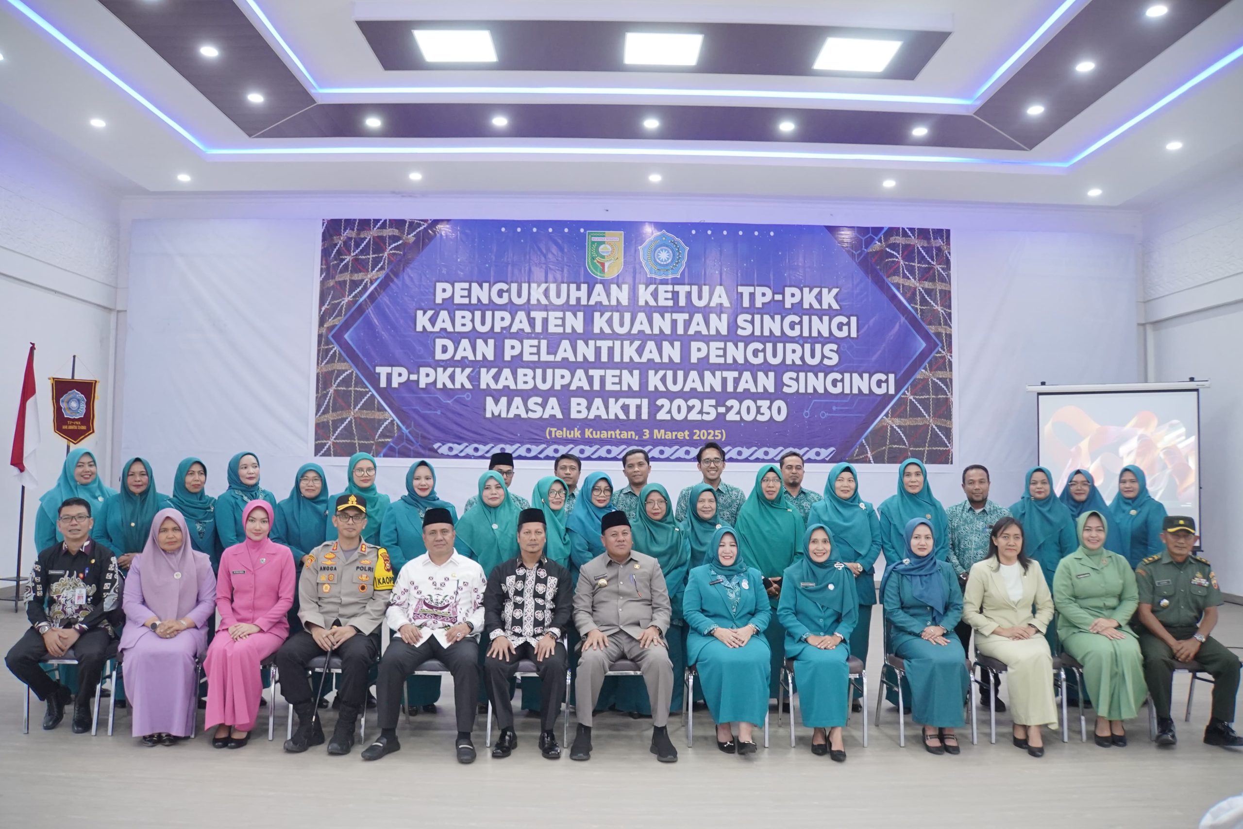 KUANTAN SINGINGI, WARTAPOLRI.COM – Pemerintah Kabupaten Kuantan Singingi menggelar acara Pengukuhan Ketua Tim Penggerak Pemberdayaan dan Kesejahteraan Keluarga (TP-PKK) Kabupaten Kuansing serta Pelantikan Pengurus TP-PKK Masa Bakti 2025-2030. Kegiatan berlangsung pada Senin, (03/03/2025), pukul 16.10 WIB di Pendopo Rumah Dinas Bupati Kuansing.