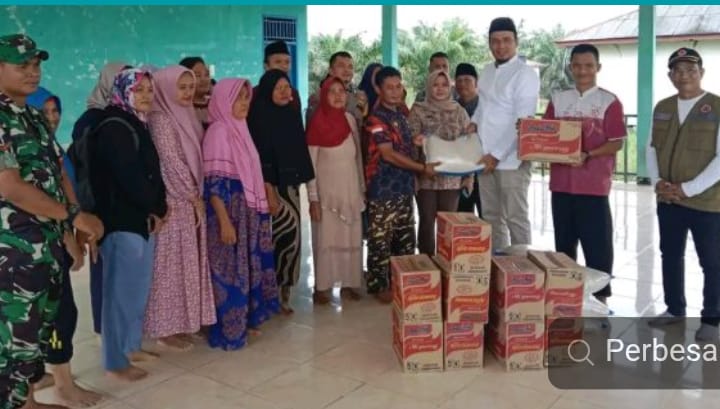 Bupati Ade Agus Hartanto menyerahkan bantuan sembako yang berasal dari Pemkab Inhu dan Baznas Kabupaten Inhu, sebagai dukungan kepada warga yang sedang menghadapi musibah banjir.