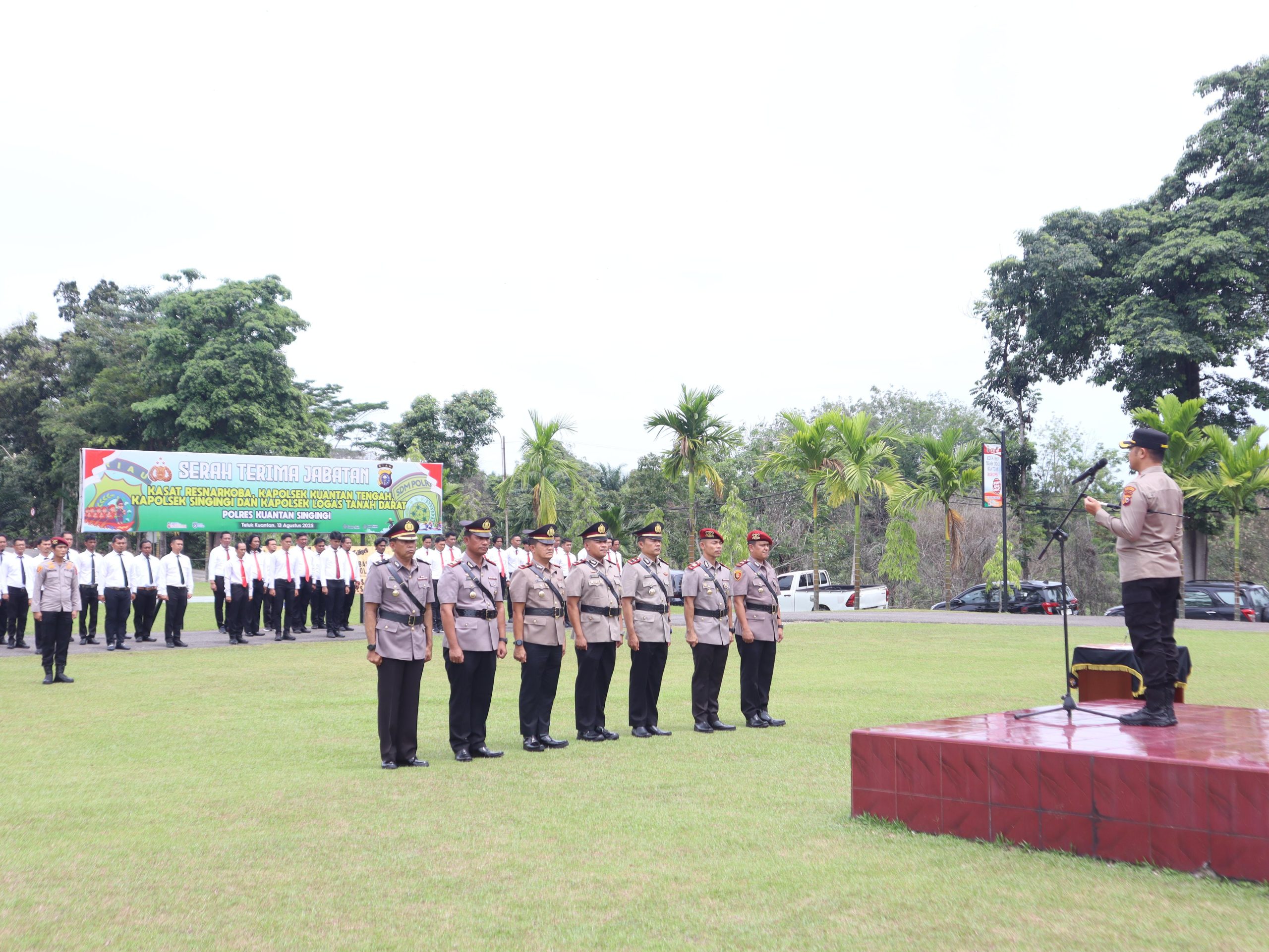 WARTAPOLRI.COM, KUANTAN SINGINGI,– Polres Kuantan Singingi menggelar upacara Serah Terima Jabatan (Sertijab) Kasat Res Narkoba, Kapolsek Kuantan Tengah, Kapolsek Singingi, dan Kapolsek Logas Tanah Darat sekitar pukul 11.30 WIB di Lapangan Apel Polres Kuansing, Rabu (13/08/2025).