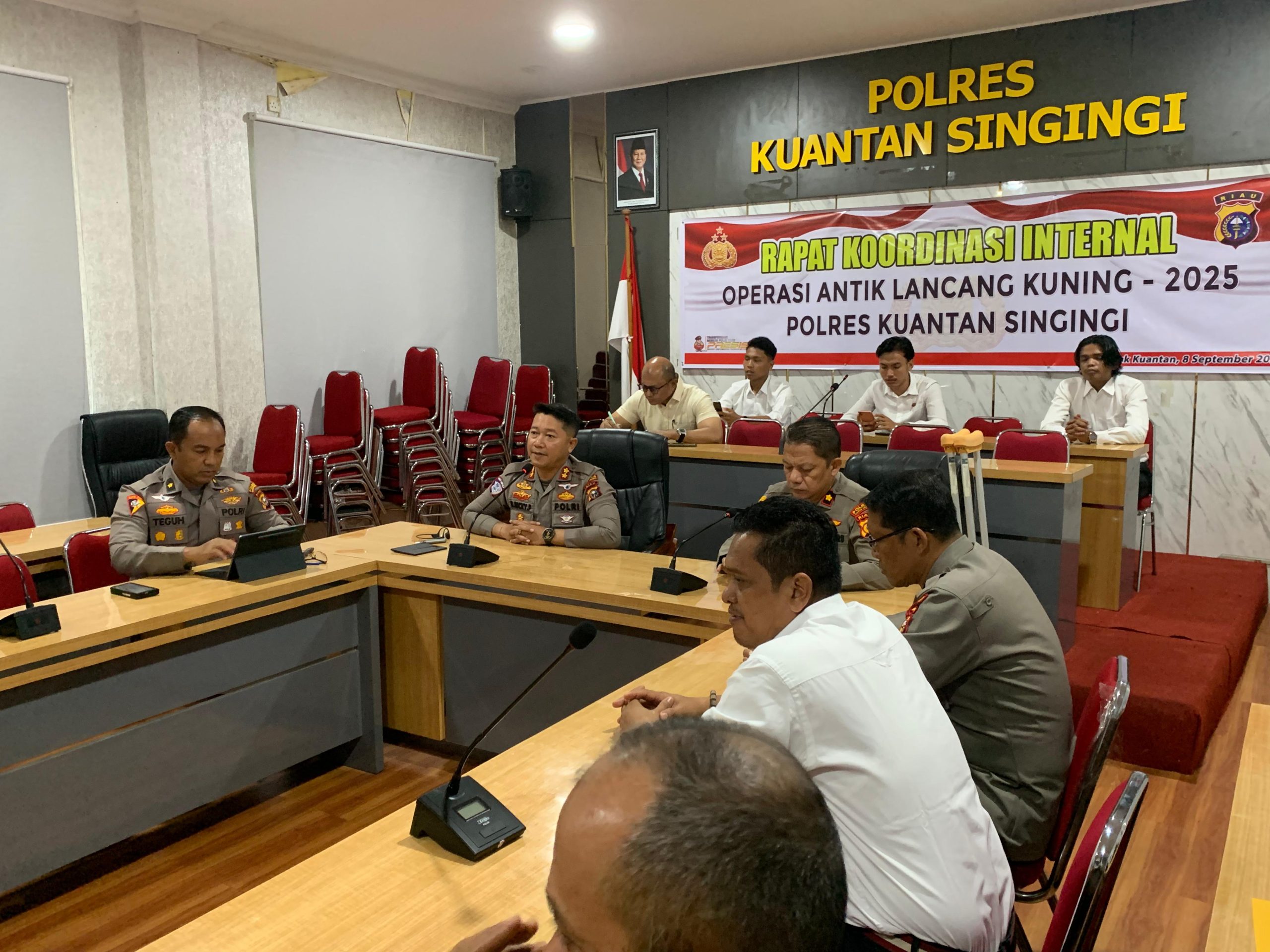 WARTAPOLRI.COM, KUANSING – Kepolisian Resor Kuantan Singingi (Polres Kuansing) menggelar Rapat Koordinasi (Rakor) Internal Operasi Antik LK 2025 pada Senin, (8/9/2025) pukul 09.00 WIB di Aula Rupatama Polres Kuansing.