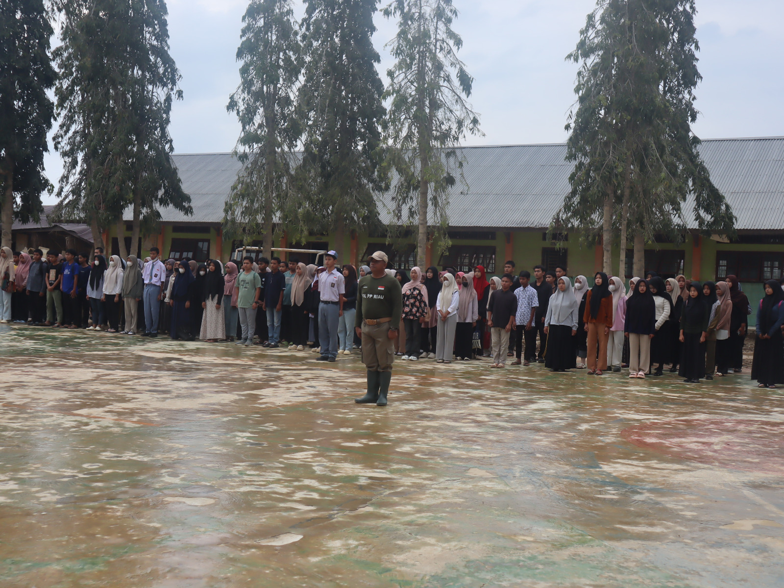 Sebanyak 42 personel Satpol PP Provinsi Riau diterjunkan langsung ke lokasi dan bekerja intensif selama empat hari. Berbagai fasilitas sekolah berhasil dipulihkan, di antaranya pembersihan lumpur dan pembuangan material sisa banjir di 7 ruang kelas, pengikisan jalan utama masuk sekolah yang telah mengeras, serta penataan taman di area pagar luar sekolah.