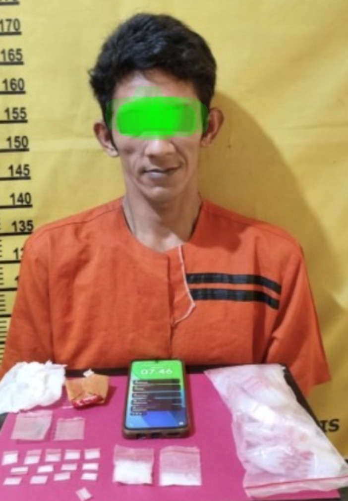 “Tersangka yang diamankan berinisial NF alias Piter. Dari hasil penggerebekan, petugas menemukan barang bukti narkotika jenis sabu dengan berat kotor keseluruhan 7,72 gram,” terang AIPTU Misran.