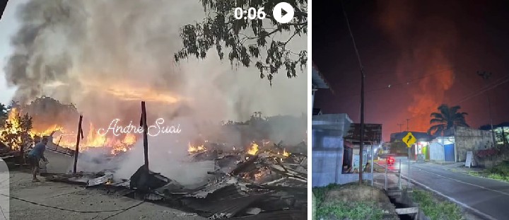 PERANAP INHU, WARTAPOLRI.COM – Malang tak dapat ditolak, mujurpun tak bisa diraih. Pepatah inilah yang dialami 15 bangunan berkisar selama 2 jam habis membumi dilahap si jago merah. Hasil pantauan dan awal terjadinya kebakaran yang menghanguskan belasan kedai dan toko tersebut terjadi sekira jam 20 45 wib, Dimana disaat iti bertepatan masuk atau sedang waktu mshokat isya. Suasana malam yang semula tenang di kawasan Pasar Kecamatan Peranap, Kabupaten Indragiri Hulu (Inhu), berubah drastis menjadi kepanikan pada Selasa (24/2) sekitar pukul 20.00 WIB. Kobaran api tiba-tiba membesar dan melalap sejumlah bangunan di area pasar, memicu kepanikan warga dan pedagang.
