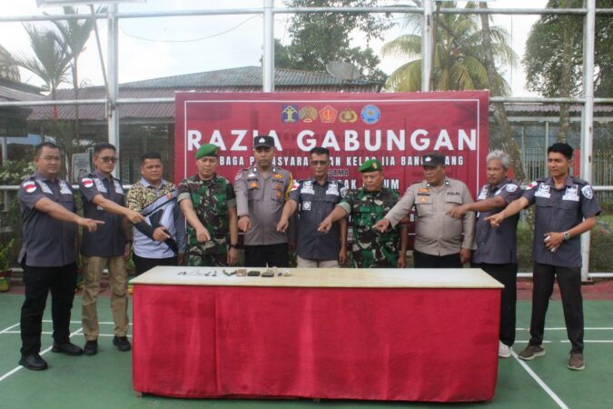 BANGKINANG, WARTAPOLRI.COM – Dalam rangka menindaklanjuti Arahan 13 (tiga belas) Program Akselerasi Menteri Imigrasi dan Pemasyarakatan khususnya pada poin 1 (satu) yakni Memberantas Peredaran Narkoba dan Pelaku Penipuan dengan berbagai modus di Lapas dan Rutan, Lembaga Pemasyarakatan (Lapas) Kelas IIA Bangkinang bersinergi dengan TNI dan Polri sebagai Aparat Penegak Hukum (APH) terkait menggelar razia kamar hunian warga binaan, Sabtu (04/01/2025).