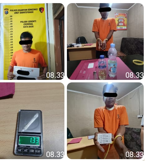 KUANTAN SINGINGI, WARTAPOLRI.COM – Polsek Cerenti kembali menunjukkan komitmennya dalam memberantas peredaran dan penyalahgunaan narkotika di wilayah hukumnya. Pada Rabu, (23/4/2025) sekitar pukul 15.00 WIB, tim Reskrim Polsek Cerenti berhasil mengungkap tindak pidana penyalahgunaan narkotika jenis Shabu dengan berat kotor 1,33 gram di Desa Pesikaian, Kecamatan Cerenti, Kabupaten Kuantan Singingi, Provinsi Riau.